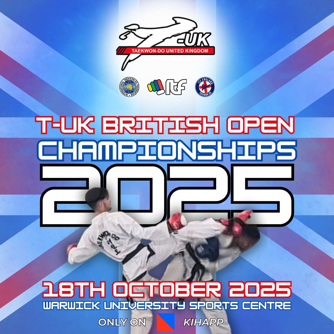 Taekwon-Do UK is proud to present the British Open Championships 2025, taking place on Saturday 18th October at the University of Warwick Sports Centre.